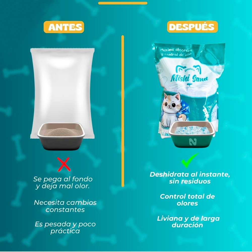 No solo es más duradera y eficiente, sino que también es más higiénica y segura para tu gato. Al no generar polvo, como la bentonita, reduce el riesgo de alergias y problemas respiratorios.