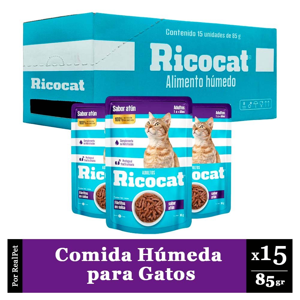 Pack Caja x15 Comida Húmeda para Gato Ricocat Filetito Atún 85gr
